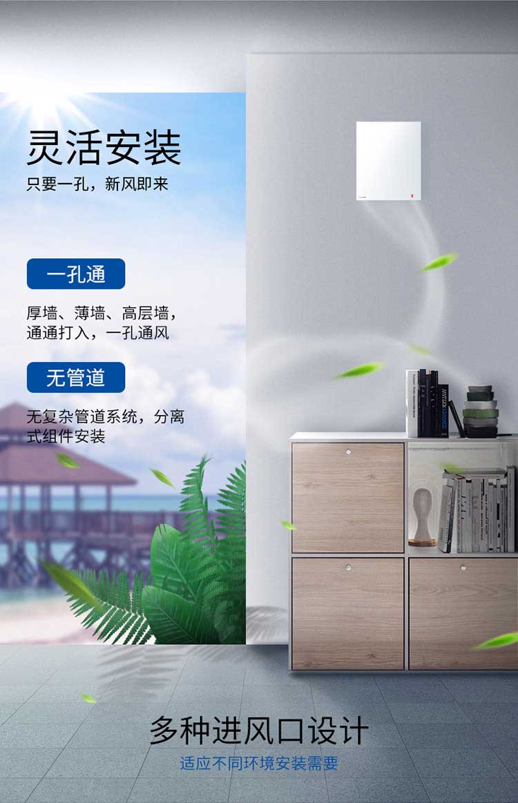 ● 靈活安裝,只要一孔,新風即來,裝修好的老房子輕松安裝